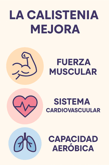 Además, revisiones recientes señalan que programas de calistenia y bodyweight training pueden aumentar la fuerza y la resistencia muscular de forma comparable a entrenamientos tradicionales cuando se aplican con intensidad y progresión adecuadas.